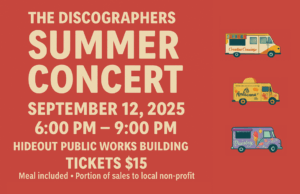 Get Ready to Rock, Hideout! The Discographers Live in Concert When: Friday, September 12, 2025Time: 6:00 PM – 9:00 PMPlace: Hideout Public Works Building – 12490 N Belaview Way Purchase Tickets Now Join