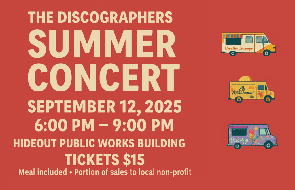 Join us for an unforgettable evening of music, dancing, and community fun as The Discographers – Utah’s ultimate rock cover band – take the stage and light up the night! This high-energy band will have you singing, swaying, and grooving all evening long.